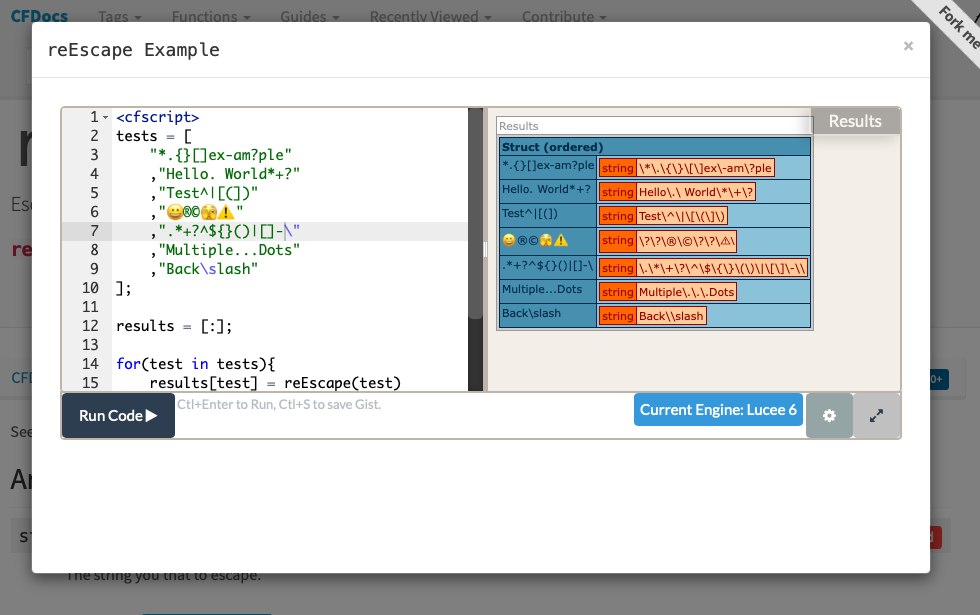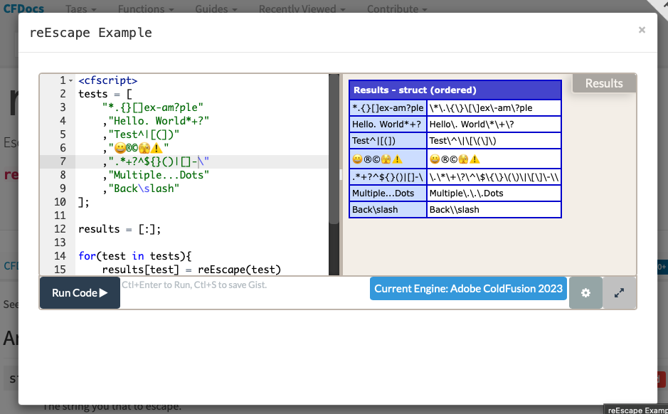 I’ve run into an issue with ReEscape() in Lucee where the output does not match Adobe ColdFusion’s behavior, particularly when the input contains Emoji or other non-BMP Unicode characters. See attached examples.
