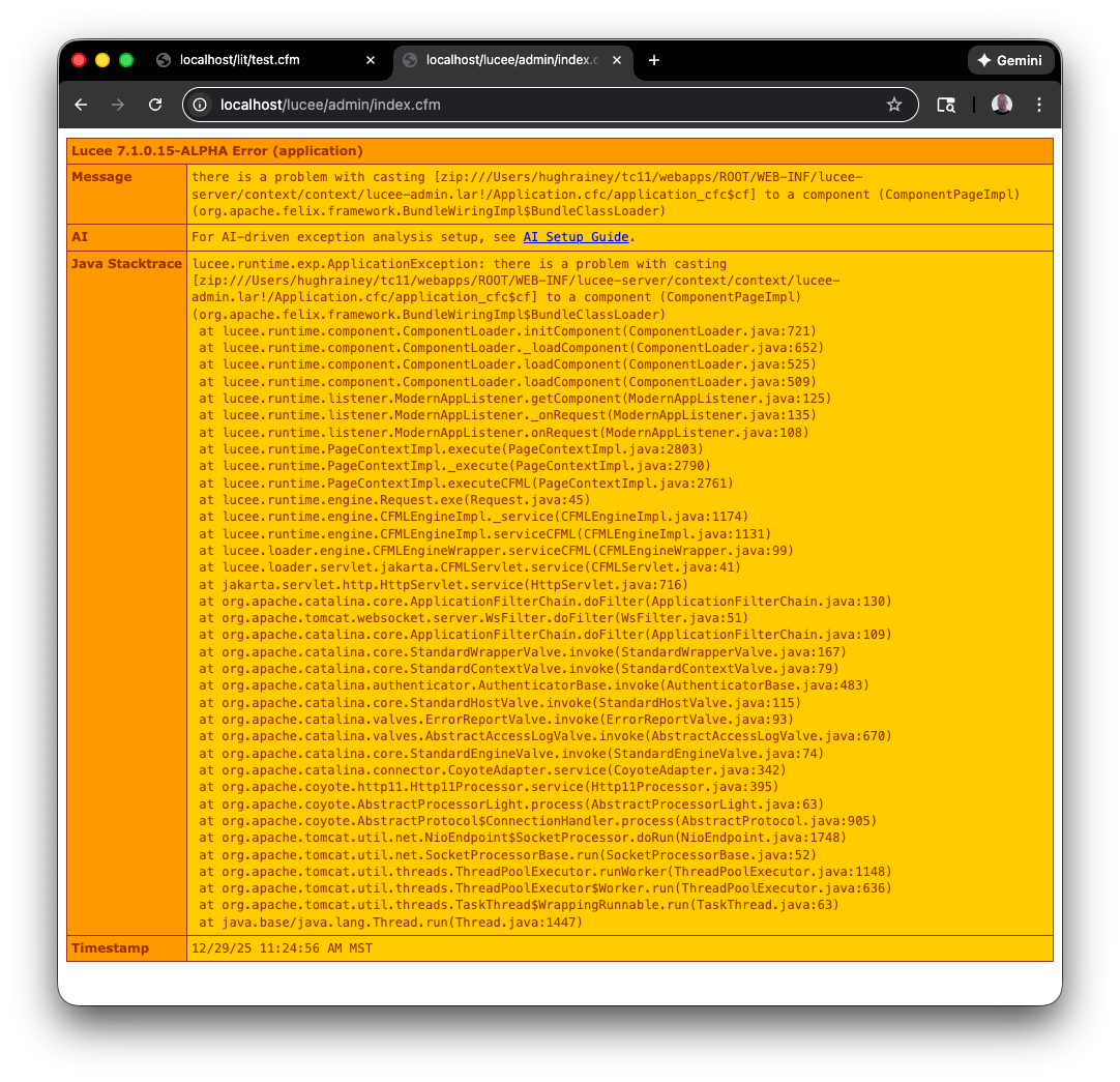 I installed the Lucee 7.1.0.15-Alpha. After I did that, I could no longer access the lucee administrator. Her’s a pic.