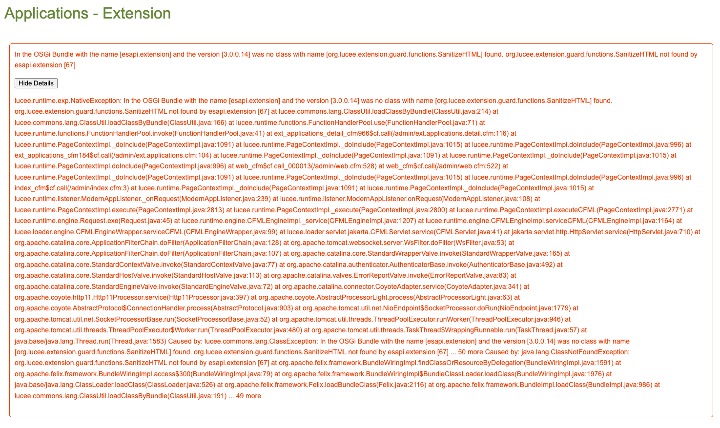Is Lucee 7 and esapi 2.6 not compatible?
